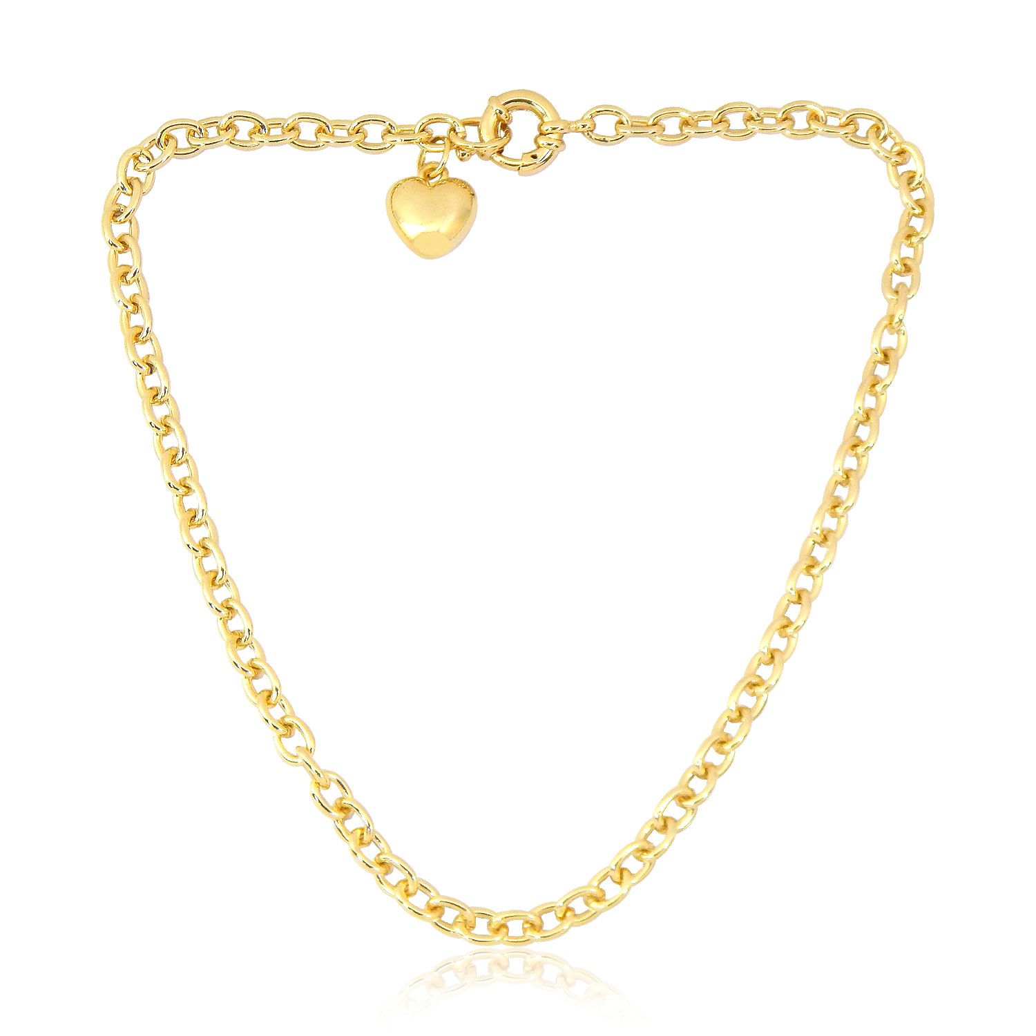 colar chocker em argolas em ouro com pingente em coração