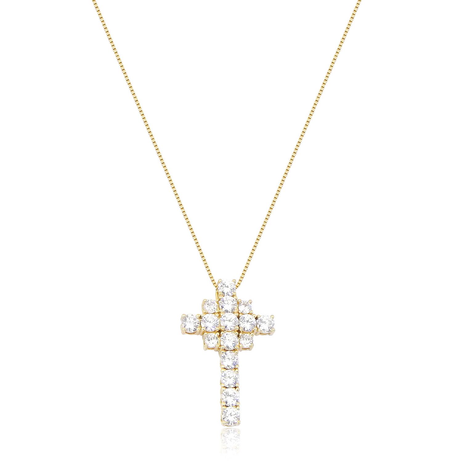 Colar com crucifixo em pedras de strass cristal, linda peça para compor um visual religioso.
