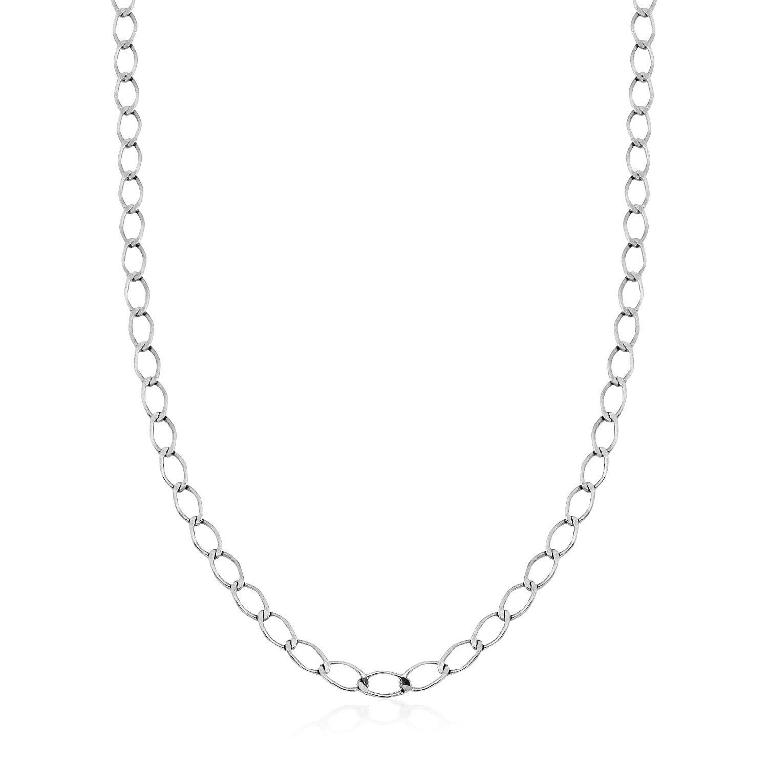 Colar de ródio branco em pequenas argolas. Perfeito para mesclar com mais colares. Diâmetro de 40 cm